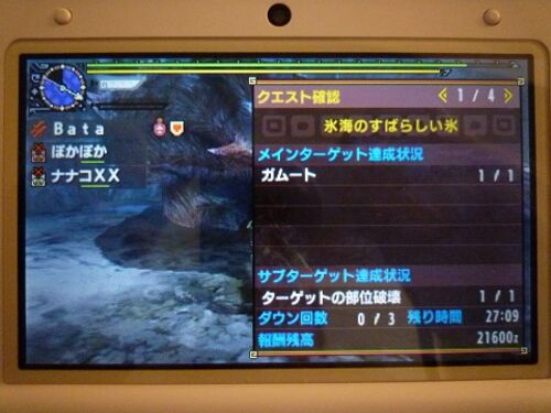ブログ訪問ありがとうございます!ささやかなハンター生活ですが、集会酒場のクエストも少し先に進めてみます村上位の「ガムート」で装備の性能確認が終わったので、集会酒場G★3『氷海のすばらしい氷』に挑戦! 装備は村上位と同じ、 武器「双剣リュウノツガ…