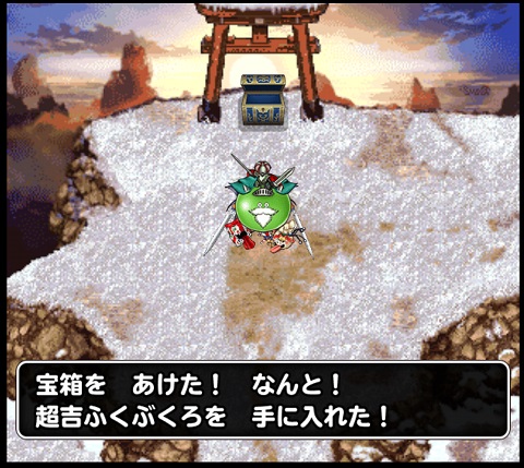 「おみくじミミック」を倒して、ふくぶくろをゲットするイベントです(ふくぶくろはメタル系モンスターと同じく経験値アップ(気合伝授)に使えます)