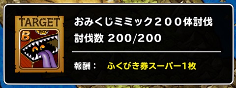 その後もずっと続けていたのですが、「ふくびき券スーパー」が貰える200体討伐で完了することにしました(討伐リストは1000まであるのですが、無課金派としては無理なので・・・)