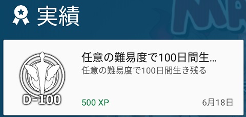 100日突破で何もメッセージが出ないので、とりあえず実績をスクリーンショット