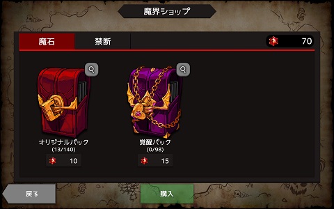 有償のアイテムを販売していると思っていたら、それ以外にゲームを進めることで入手できる「魔石」を利用して「オプションパック」が入手できる(=ゲーム開始時にロックされている機能が使える)ようになるようです(既に「覚醒パック」なるアイテムも追加されています)