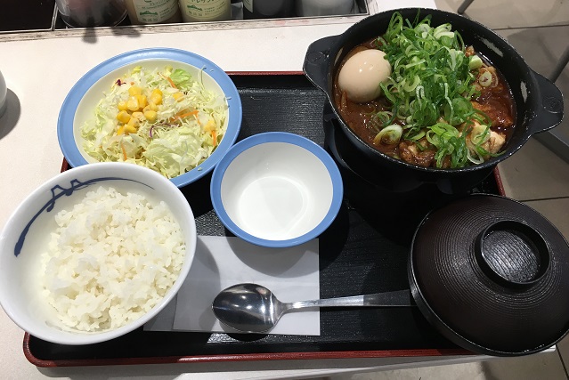 寒い日にはぴったり、暖まります 松屋「鶏と玉子の味噌煮込み鍋膳」
