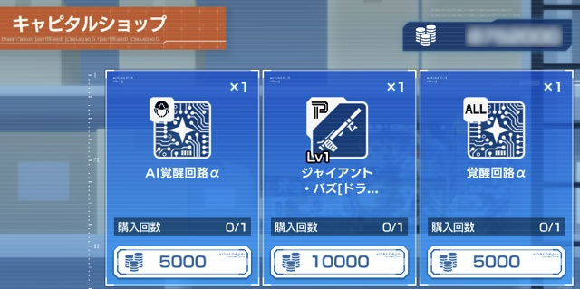 毎日コツコツとキャピタルショップを訪れて、「覚醒回路α」を購入していく必要がありますが、おそらくこれで毎月何個かの「覚醒回路γ」を手に入れることができるようになると思います