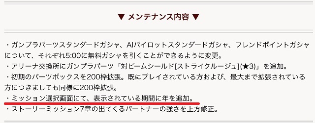 パーツボックス拡張や「対ビームシールド[ストライクルージュ]」追加など嬉しいお知らせがちらほら。でも笑ったのは下線の部分。とうとう対応するそうです。