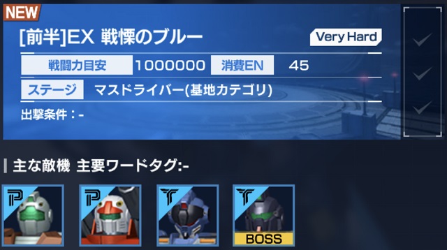 消費ENも戦闘力目安もいつものEXミッションと同じです。