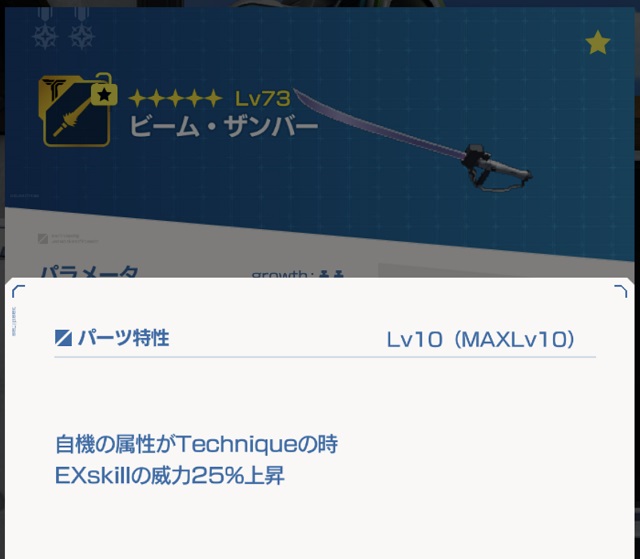 機体をTechnique属性にビルドするという条件はありますが、パーツ特性Lv10にすれば『EXskillの威力25%上昇』